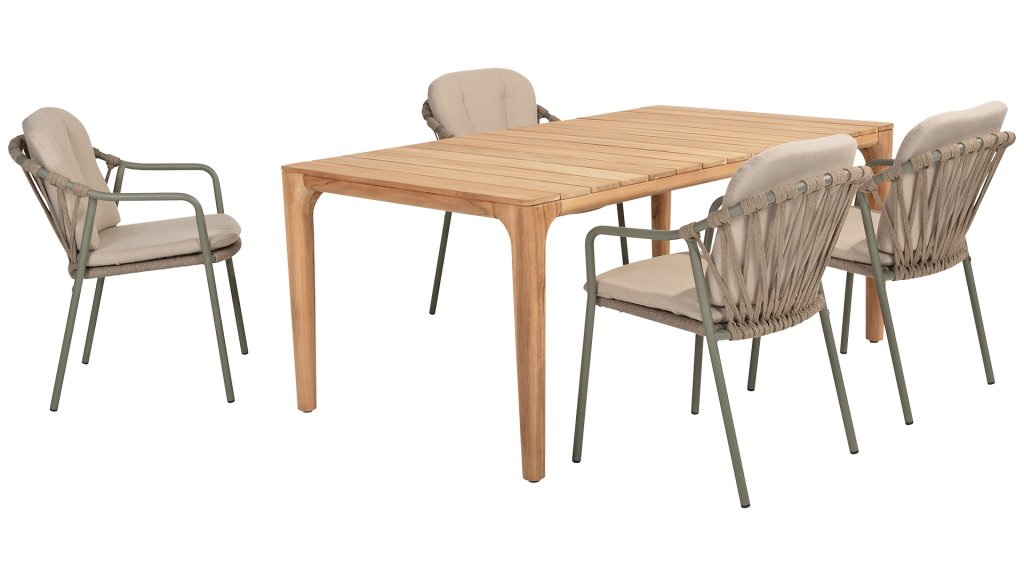De Liam tafel van Taste 4SO heeft een elegant ontwerp die zeker gezien wordt wanneer deze in een ruimte staat. Het tafelblad valt op doordat de latten over de breedte liggen. Dit tafelblad onderscheid zich hierdoor van de meeste andere tafels en zorgt voor een eigentijdse en originele uitstraling. De Liam tafel heeft een mooi, elegant onderstel die prachtig aansluit bij het tafelblad. De tafel bestaat volledig uit teakhout, mag het hele jaar door buiten blijven staan. Met de Liam tafel van Taste 4SO kunt u genieten van de tijdloze charme en duurzaamheid van teakhout terwijl je dineert in de open lucht. Verkrijgbaar in volledig teakhout en teakhout-keramiek: