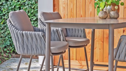 De Taste Manolo High Dining staat voor de perfecte balans tussen een traditionele eetkamerstoel en een moderne barkruk. Een onderhoudsarme tafel met een moderne uitstraling. De tafel onderscheidt zich door het Deens ovale tafelblad, gemaakt van glass printed keramiek waardoor de tafel het hele jaar door buiten kan blijven staan.