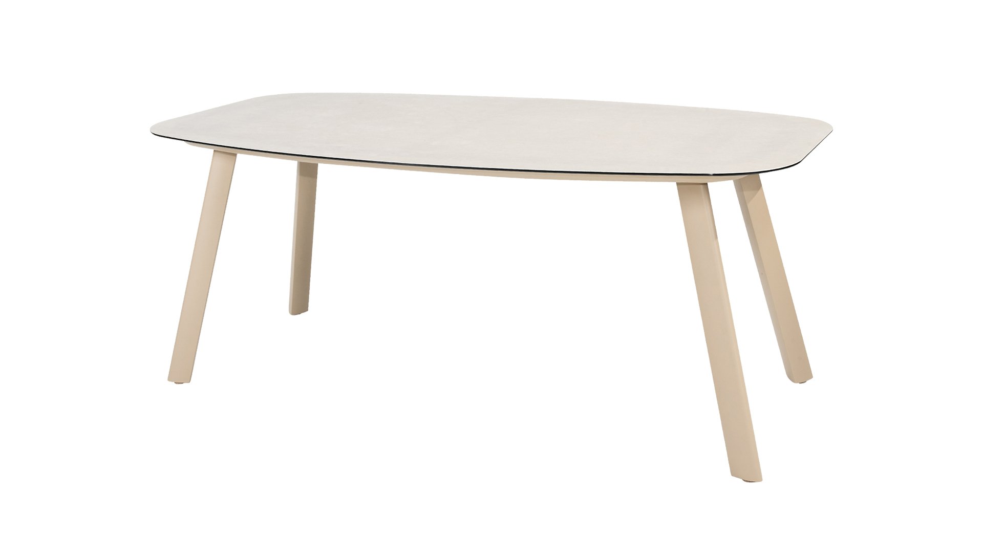 Op zoek naar een onderhoudsarme tafel met een moderne uitstraling? Kijk dan eens naar de Taste by 4 Seasons Outdoor Manolo 180cm, verkrijgbaar in de kleuren Antraciet, Latte én Terre. Door de vorm van het tafelblad en de positie van de aluminium tafelpoten is deze tafel heel erg praktisch. Door de vorm ontstaat er genoeg ruimte aan alle zijdes van de tafel. De tafel onderscheidt zich door het Deens ovale tafelblad, gemaakt van glass printed keramiek waardoor de tafel het hele jaar door buiten kan blijven staan. De Manolo is ook nog verkrijgbaar in de maten: 75x75x75cm en 240x103x75cm in drie kleuren.