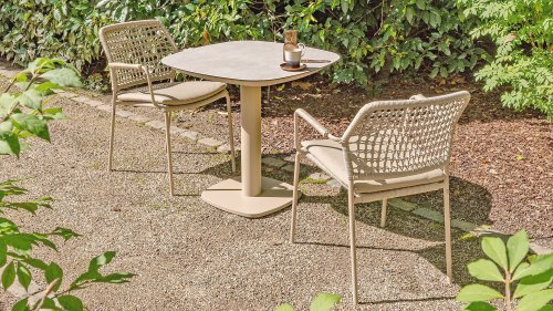 De Taste by 4 Seasons Outdoor Manolo 75cm is verkrijgbaar in drie trendy kleuren: Latte, een warme, neutrale tint die gemakkelijk te combineren is met verschillende stoelen. Antraciet, een donkerdere kleur die een strakke, moderne look toevoegt. En Terre, een warme donkere aardetint. Deze veelzijdige tafel is ideaal voor zowel binnen- als buitenshuis en biedt een perfecte plek voor een kop koffie of een gezellig diner. Ook verkijgbaar in grotere varianten, namelijk 180x95x75cm én 240x103x75cm in 3 kleuren.