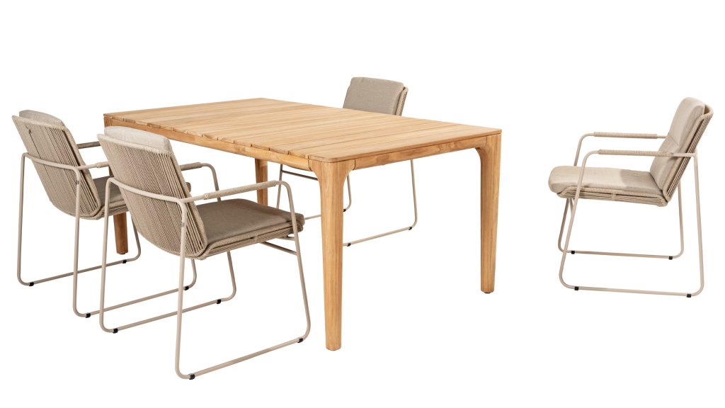 De Liam tafel van Taste 4SO heeft een elegant ontwerp die zeker gezien wordt wanneer deze in een ruimte staat. Het tafelblad valt op doordat de latten over de breedte liggen. Dit tafelblad onderscheid zich hierdoor van de meeste andere tafels en zorgt voor een eigentijdse en originele uitstraling. De Liam tafel heeft een mooi, elegant onderstel die prachtig aansluit bij het tafelblad. De tafel bestaat volledig uit teakhout, mag het hele jaar door buiten blijven staan en is ook nog eens verkrijgbaar in de maat 240cm. Bekijk hier de Taste 4Seasons Liam 240.