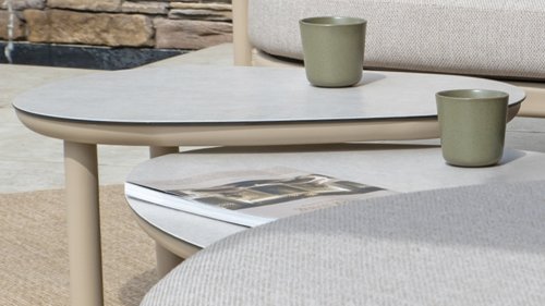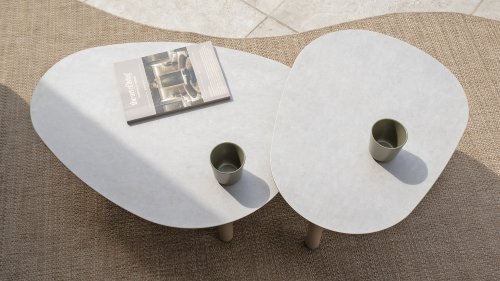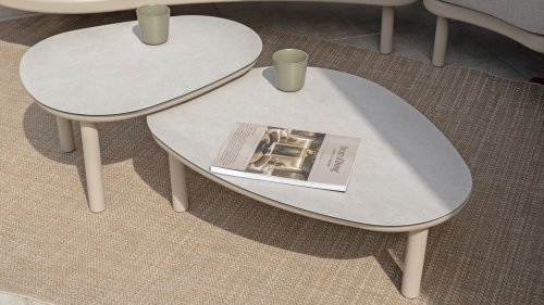 Breng een vleugje elegantie en verfijning in je zithoek met de Monroe salontafelserie van Taste by 4 Seasons Outdoor. Deze prachtige set bestaat uit twee organisch gevormde tafels met kiezelvormige bladen – speels, maar toch perfect in balans. Dankzij het onderscheidende design vormt Monroe het stijlvolle middelpunt van elke buiten- of binnenruimte.