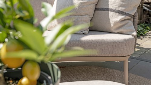 De sterke stof is bestand tegen een regenbui, uitritsbaar en wasbaar. Handig, maar let wel: de kussens zijn waterafstotend. Laat je ze lang in de regen liggen, dan kunnen ze alsnog nat worden aan de binnenkant.