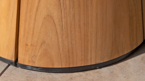 Teakhout is een natuurproduct en bijzonder geschikt voor buitengebruik. Het is bestand tegen ongedierte en schimmels en kan tegen zon, regen en sneeuw. Na verloop van tijd ontwikkelt het teakhout een zilvergrijze patina. Teakhout is een robuust materiaal en vergt weinig onderhoud. Als u de voorkeur geeft aan de originele kleur van het teakhout, kunt u eenvoudig voorkomen dat het hout vergrijst door regelmatig ons verzorgingsproduct te gebruiken. Teakhout kunt u ook reinigen met groene zeep. We geven garantie op alle productie en constructiefouten. De werking van teakhout is hier niet bij inbegrepen. Wanneer je kiest voor teakhout, verwachten we dat je deze eigenschappen waardeert. Haarscheurtjes die kunnen ontstaan, noesten in het teak en na verloop ruwe oppervlakken of onregelmatige verkleuringen zijn geen onderdeel van onze garantie. Deze eigenschappen geven het teakhout een eigen karakter en uitstraling zijn onderdeel van de natuurlijke eigenschappen. Wees voorzichtig met een bloempot of vaas op je teak tuintafel, hierdoor ontstaan er hardnekkige kringen of kleurverschillen. Imperfecties komen vaak voor, deze oneffenheden zijn kenmerkend voor dit product. Deze onregelmatigheden kunnen nooit aanleiding geven tot een claim, garantie of klacht. Dit is een teken van originaliteit!