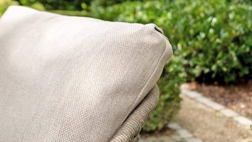 De sterke stof is bestand tegen een regenbui, uitritsbaar en wasbaar. Handig, maar let wel: de kussens zijn waterafstotend. Laat je ze lang in de regen liggen, dan kunnen ze alsnog nat worden aan de binnenkant.