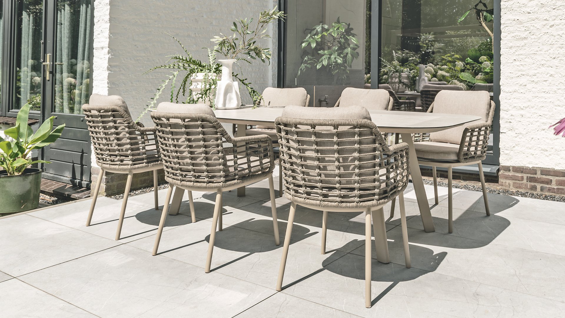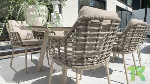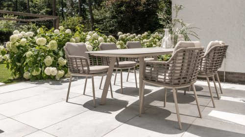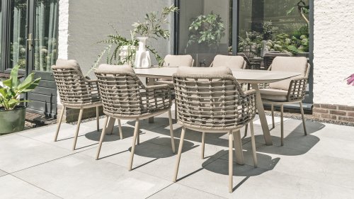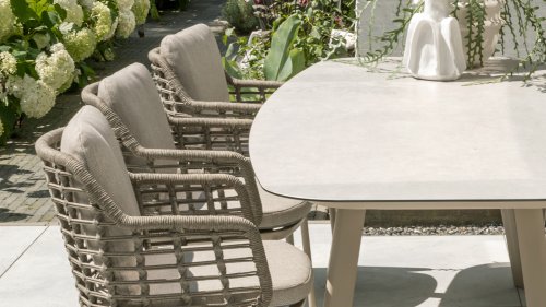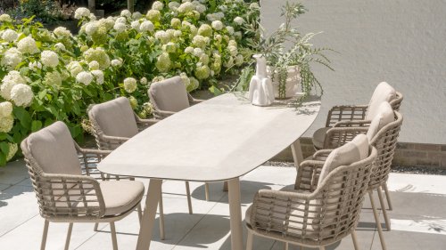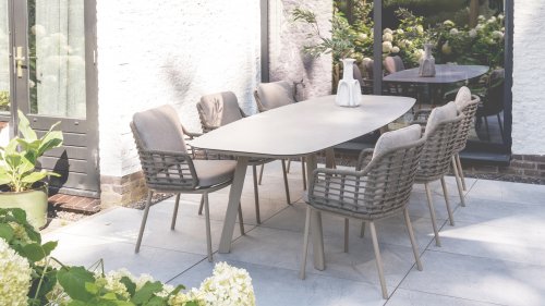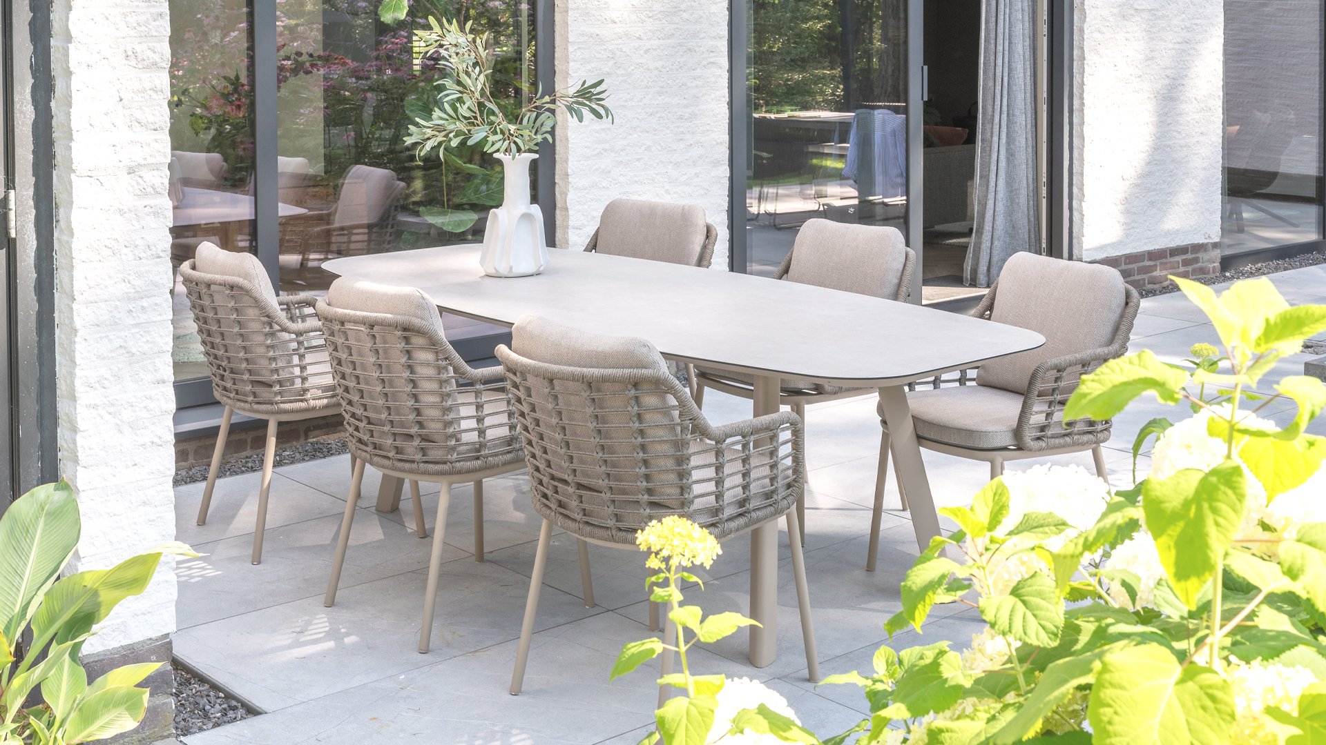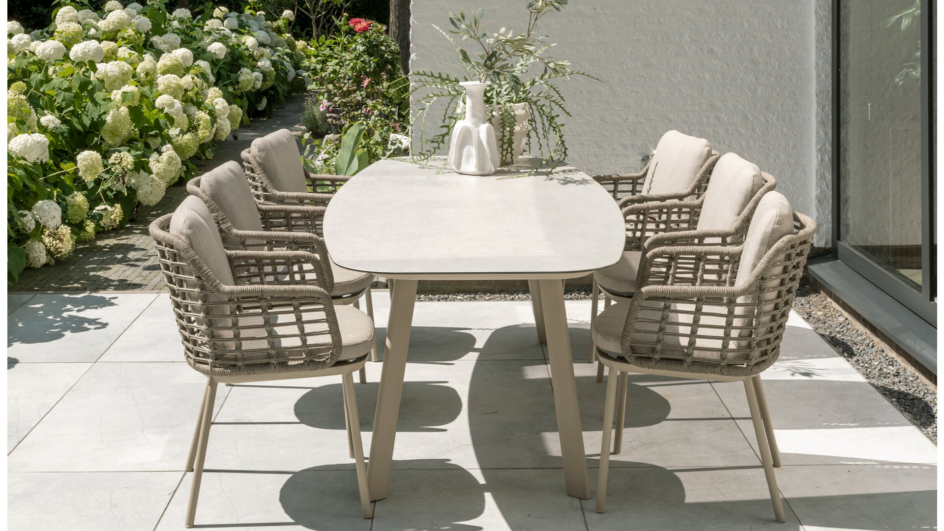 Taste by 4 Seasons Outdoor Puglia Dining - Haal de warme, authentieke sfeer van Zuid-Italië naar uw eigen terras. Deze collectie is een absolute topper voor wie op zoek is naar een combinatie van hoogstaand design, organische vormen en ultiem zitcomfort. De naam van deze serie is niet zomaar gekozen. Het design van deze meubelen weerspiegelt die Zuid-Europese charme: de organische lijnen en het gebruik van aardse en lichte tinten brengen direct die ontspannen, zomerse vibe in uw tuin.