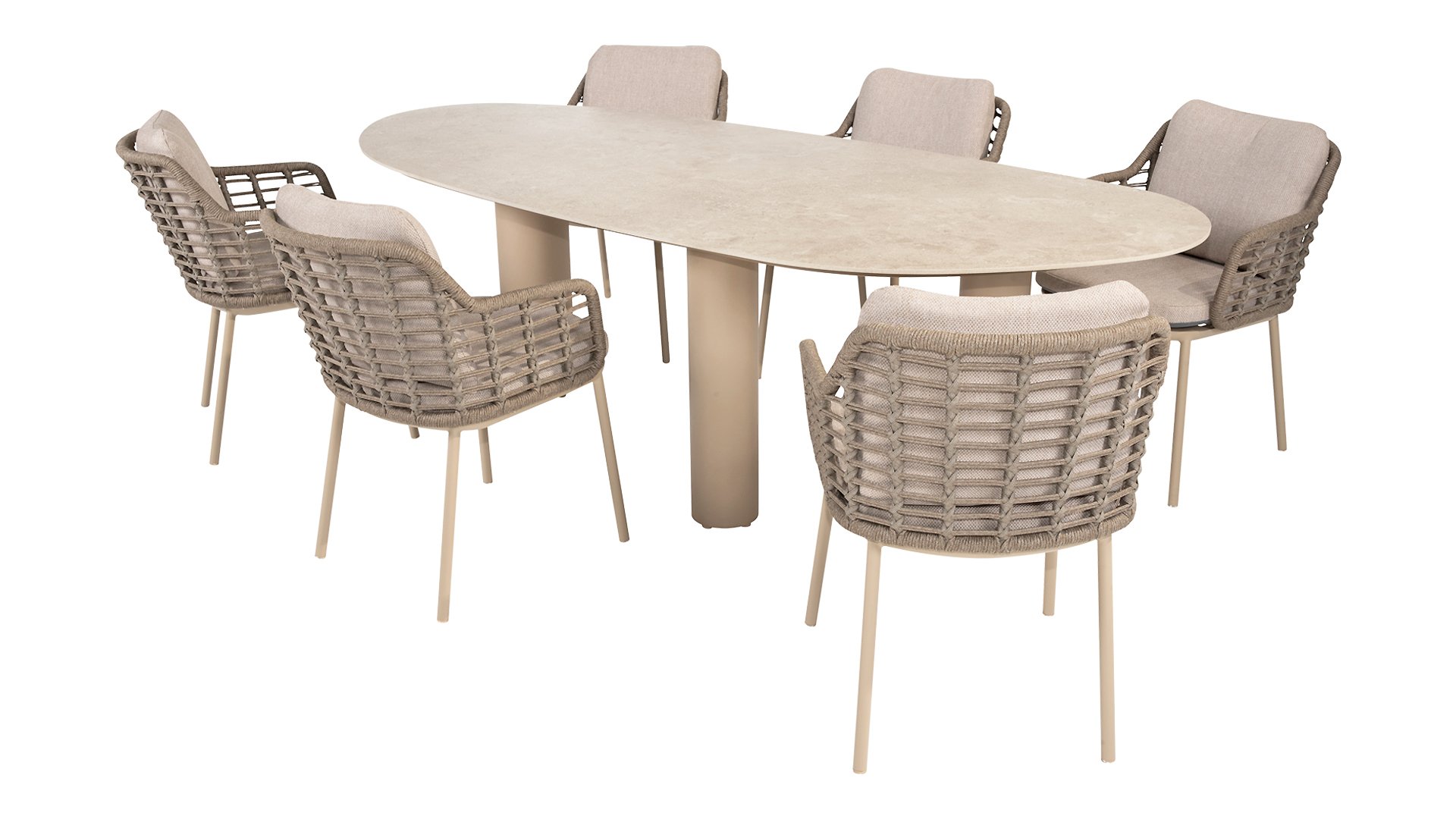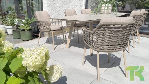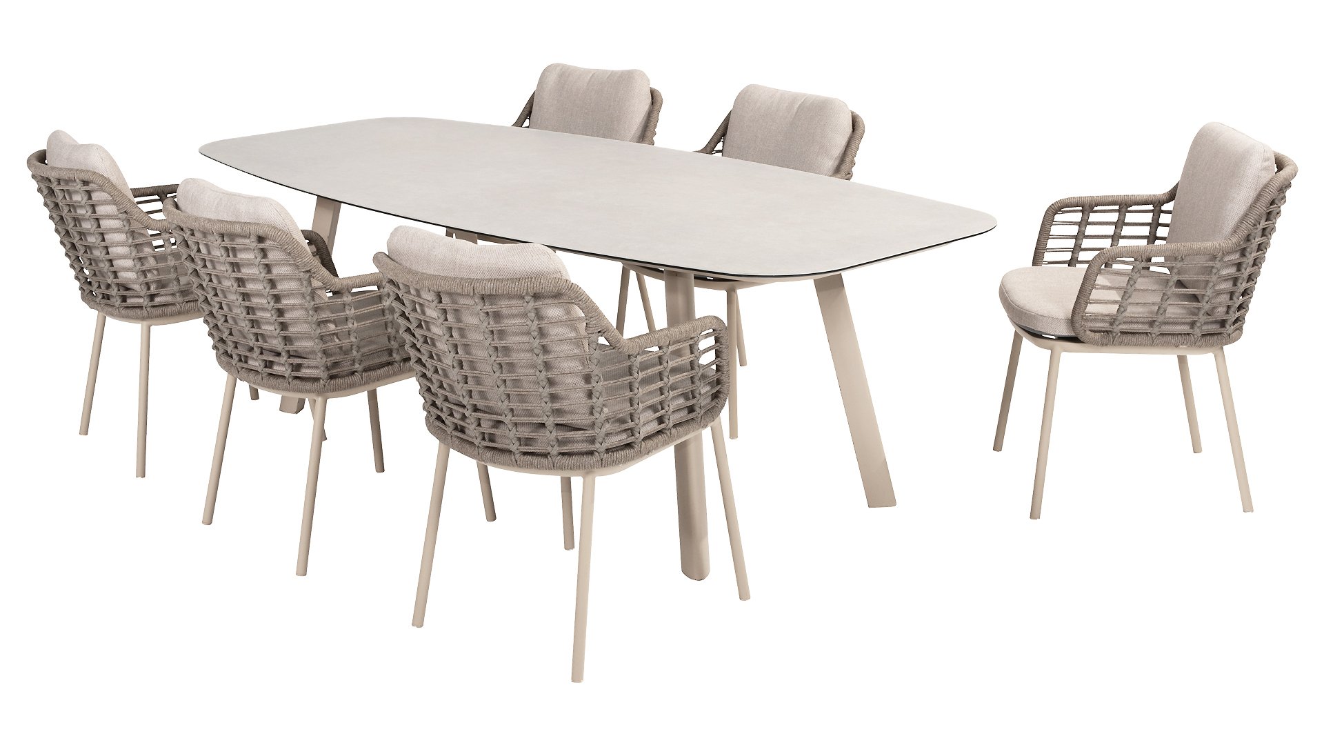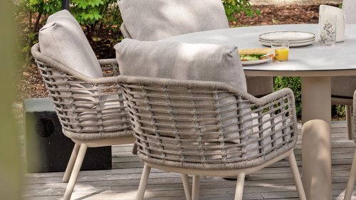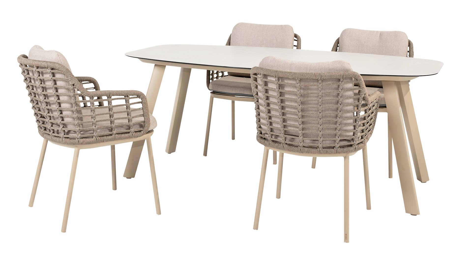 Taste by 4 Seasons Outdoor Puglia Dining - Haal de warme, authentieke sfeer van Zuid-Italië naar uw eigen terras. Deze collectie is een absolute topper voor wie op zoek is naar een combinatie van hoogstaand design, organische vormen en ultiem zitcomfort. De naam van deze serie is niet zomaar gekozen. Het design van deze meubelen weerspiegelt die Zuid-Europese charme: de organische lijnen en het gebruik van aardse en lichte tinten brengen direct die ontspannen, zomerse vibe in uw tuin.