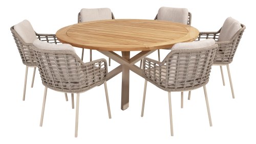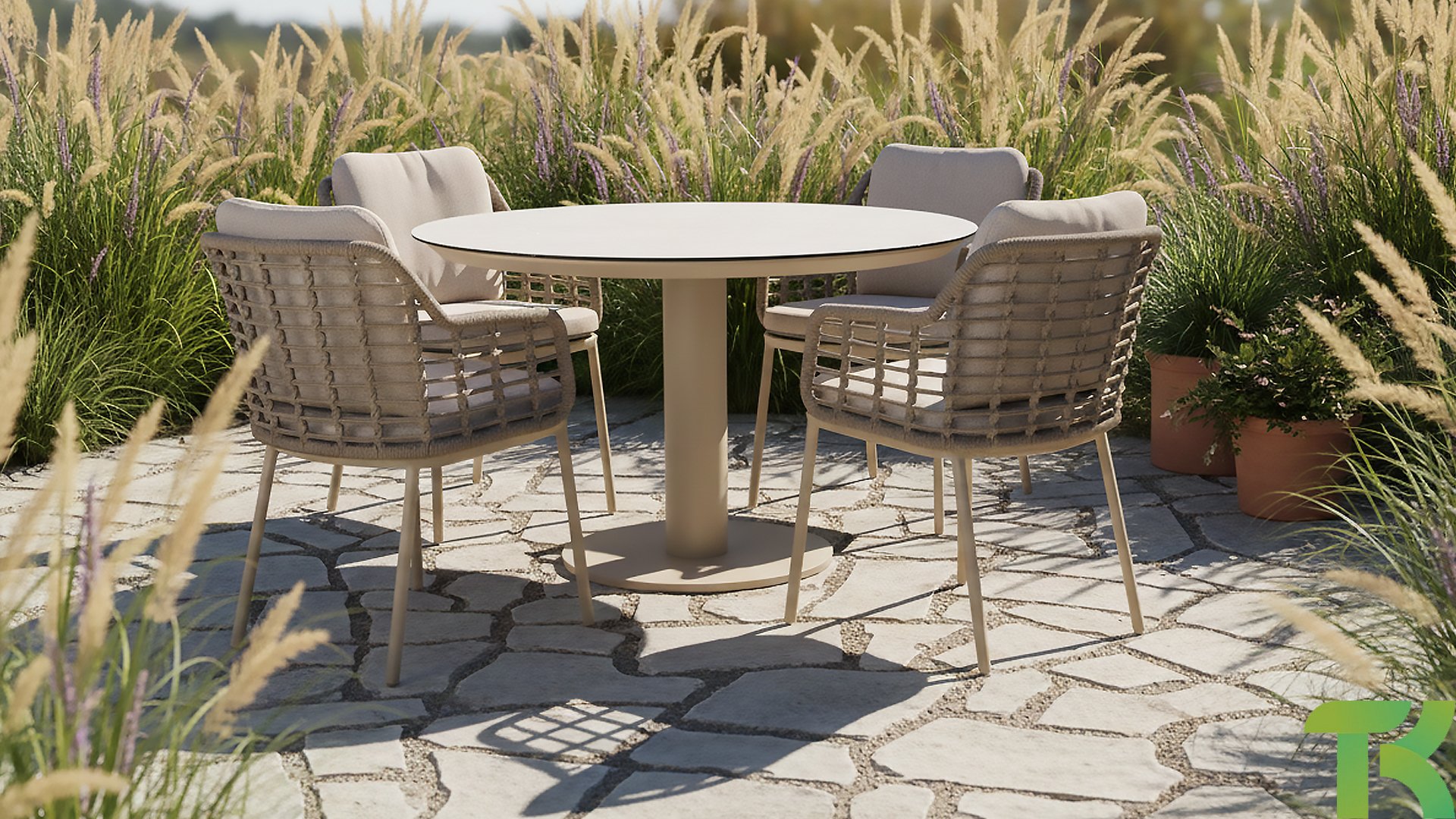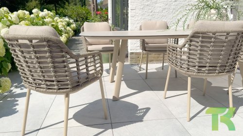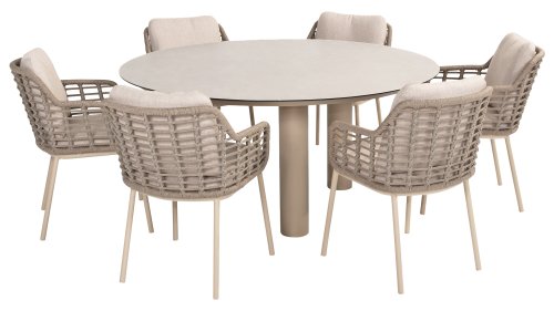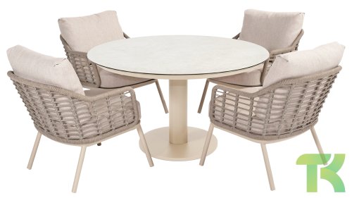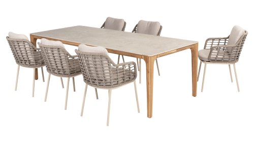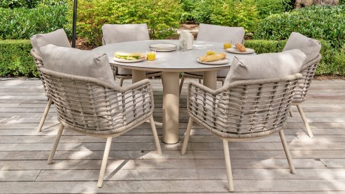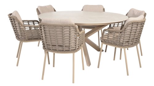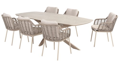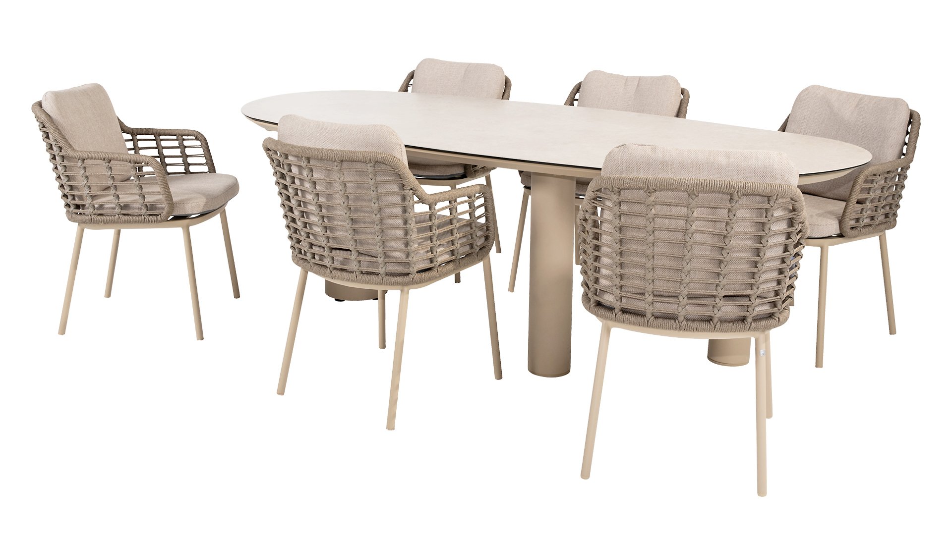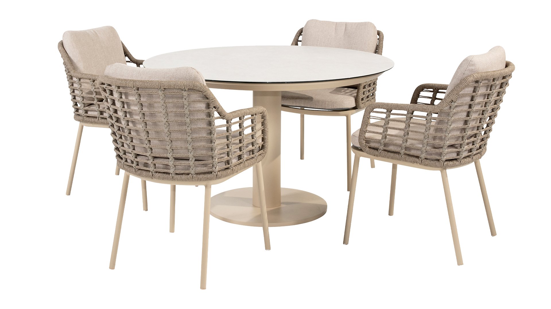 Taste by 4 Seasons Outdoor Puglia Dining - Haal de warme, authentieke sfeer van Zuid-Italië naar uw eigen terras. Deze collectie is een absolute topper voor wie op zoek is naar een combinatie van hoogstaand design, organische vormen en ultiem zitcomfort. De naam van deze serie is niet zomaar gekozen. Het design van deze meubelen weerspiegelt die Zuid-Europese charme: de organische lijnen en het gebruik van aardse en lichte tinten brengen direct die ontspannen, zomerse vibe in uw tuin.
