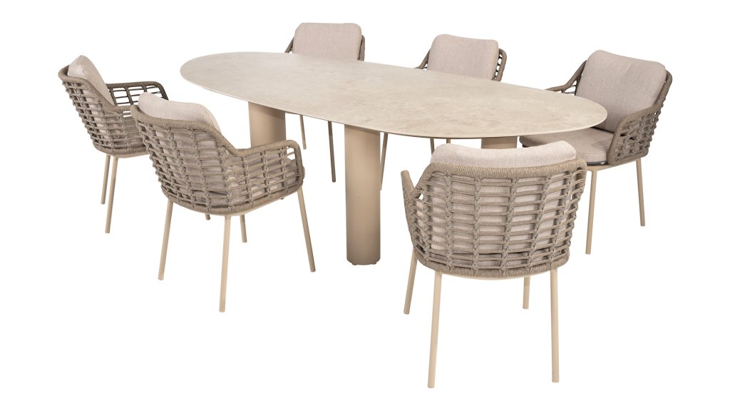 1 x Taste 4Seasons Estate tafel mango vorm keramiek-alu Latte 240x105cm