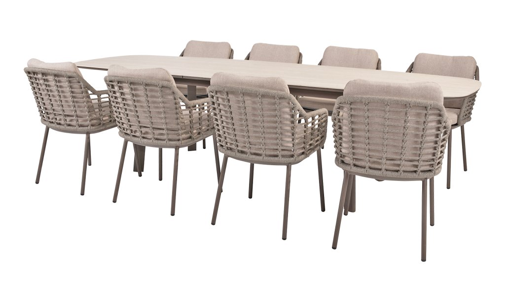 De Taste Manolo uitschuifbare tafel is een multifunctioneel product. Verwacht je meer visite? Dan is deze tafel uit te schuiven tot een lengte van 290cm. De tafel onderscheidt zich door het Deens ovale tafelblad, gemaakt van glass printed keramiek waardoor de tafel het hele jaar door buiten kan blijven staan. Verkrijgbaar in twee kleuren: Latte & Terre.