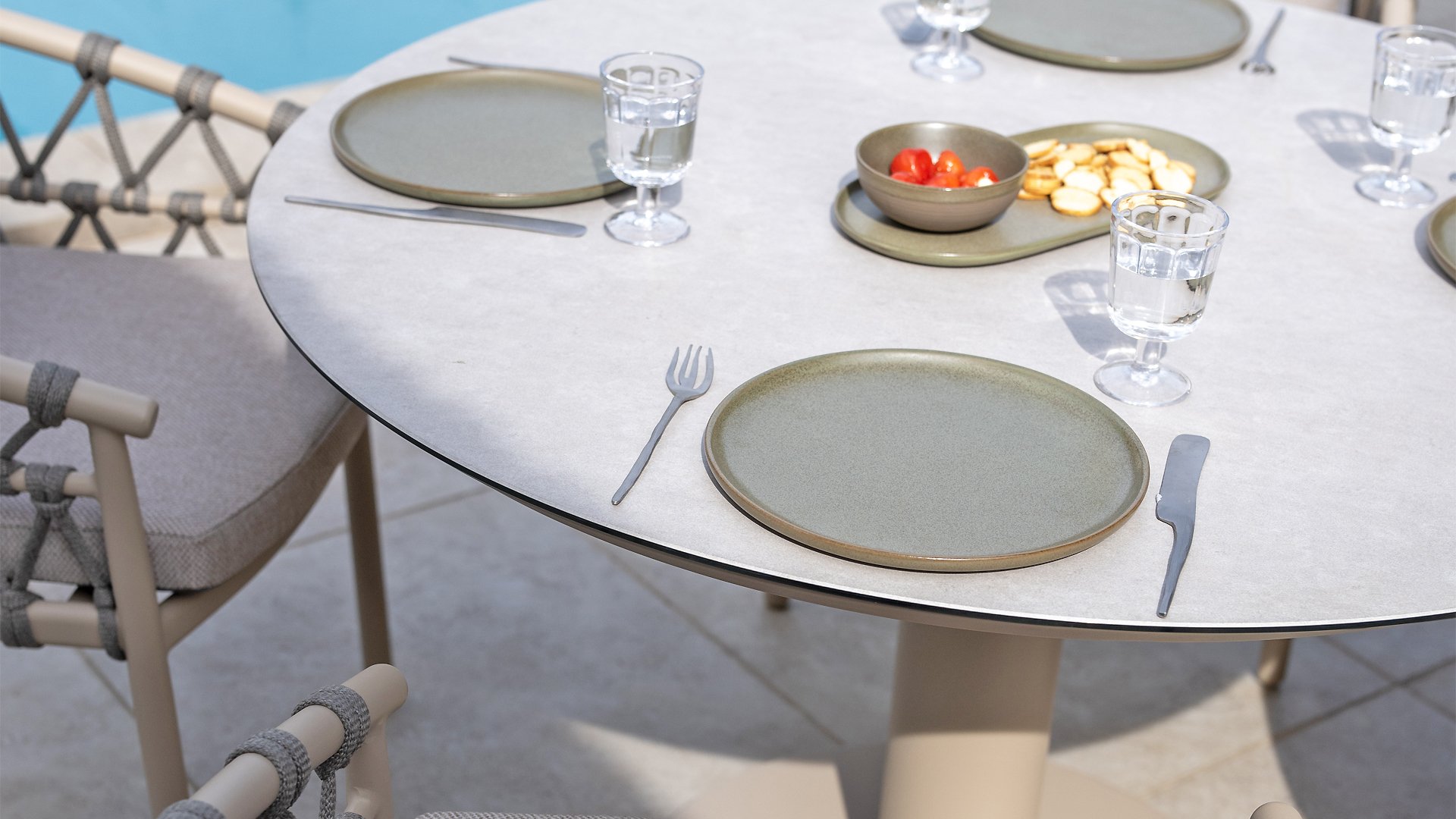 Maak kennis met de Taste Sarah, de ronde tafel die elegantie en functionaliteit moeiteloos combineert. Deze prachtige tafel is een echte blikvanger in iedere tuin of eetruimte. Dankzij het ronde design geniet je van een gezellige, uitnodigende sfeer waarbij iedereen aan tafel met elkaar in contact blijft.