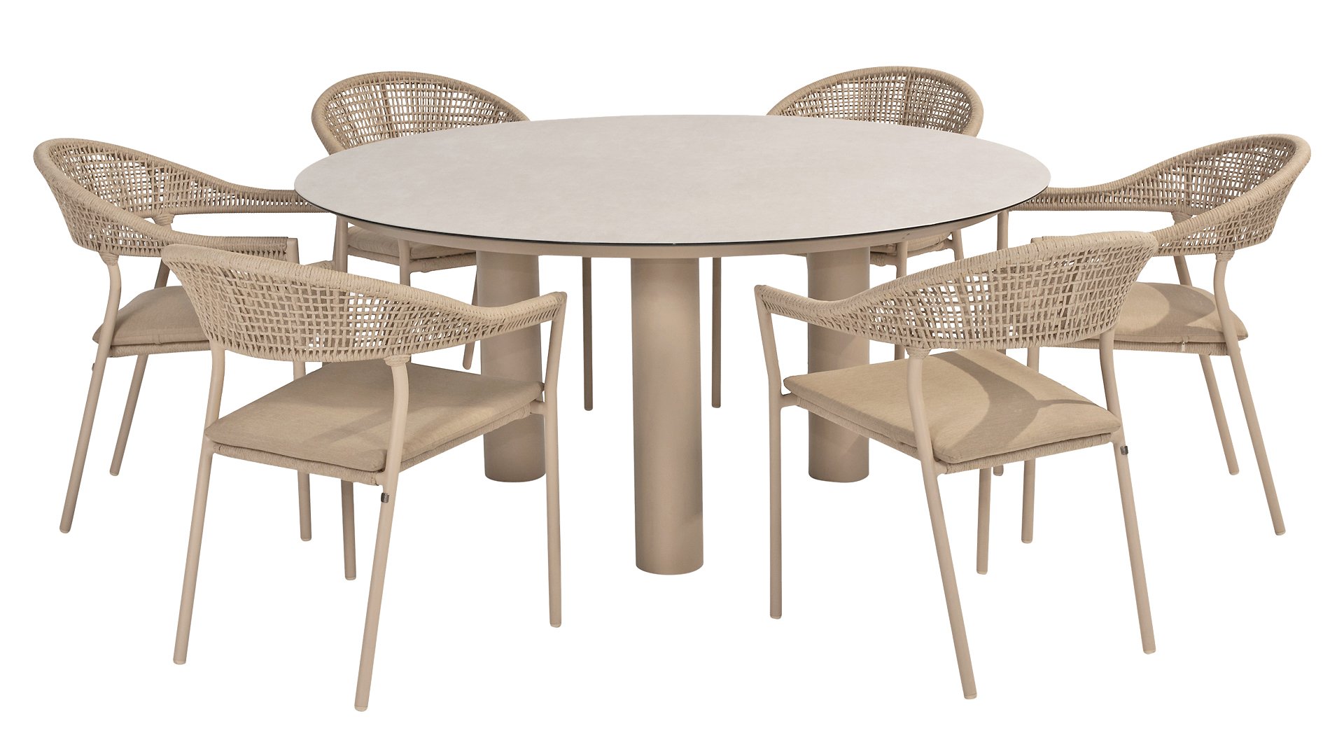 De Donato tafel is een schitterende aanvulling op elke eetruimte, met een diameter van 160cm die ideaal is voor gezellige bijeenkomsten. Wat deze tafel bijzonder maakt, is het ontwerp van de poten; met in totaal drie poten, geplaatst in een "driehoek" biedt hij niet alleen stabiliteit maar ook een opvallende speelse look. Het tafelblad van keramiek op glas geeft een luxe uitstraling en is tegelijkertijd gemakkelijk te onderhouden. In de Taste by 4 Seasons Outdoor Donato serie zijn er wel wat mogelijkheden, zo is hij verkrijgbaar als eettafel in de kleuren: Taste 4Seasons Donato Tafel Ø160cm Latte & Taste 4Seasons Donato Tafel Ø160cm Terre, wat je de mogelijkheid biedt om de perfecte match voor jouw interieur te kiezen. Om de mayonaise of melk te geven aan degene tegenover je, voeg je simpelweg de: Taste 4Seasons Donato Lazy Susan toe aan het geheel. Daarnaast is er ook een low dining variant verkrijgbaar in de kleur Latte en Terre, ideaal voor een informele en relaxte eetervaring: Taste 4Seasons Donato Low Dining Tafel Ø160cm Latte, Taste 4Seasons Donato Low Dining Tafel Ø160cm Terre. Wat nog meer?