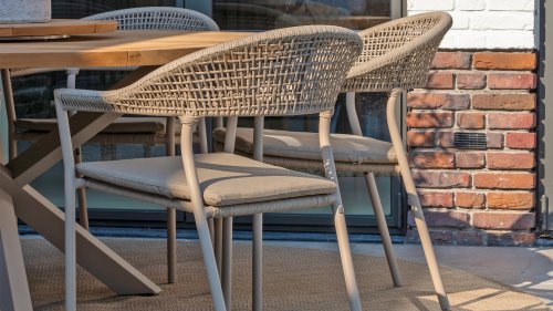 Wist je dat Sienna verwijst naar een historische stad vol warme tinten, zachte rondingen en mediterrane elegantie? Diezelfde verfijnde sfeer vind je terug in het ontwerp van de Taste by 4 Seasons Outdoor Sienna tuinstoel. De vloeiende lijnen en het stijlvolle rope vlechtwerk ademen rust, comfort en modern design. Neem plaats, laat je omarmen door de ergonomische rondingen en geniet – of je nu in de zon zit of in de schaduw ontspant. De Taste 4SO Sienna heeft een uniek karakter waarin vakmanschap en gebruiksgemak samenkomen. Het handgevlochten rope vormt samen met het aluminium frame een luchtige, lichte tuinstoel waarbij de vloeiende lijnen een speels en minimalistisch geheel creëren. Daarnaast is de Sienna niet alleen prachtig, maar ook praktisch: de stoelen zijn stapelbaar en daardoor eenvoudig op te bergen. Verkrijgbaar in meerdere stijlvolle kleuren namelijk: Latte, Terre & Antraciet, zodat je altijd een variant vindt die perfect matcht met jouw tuin of terras.