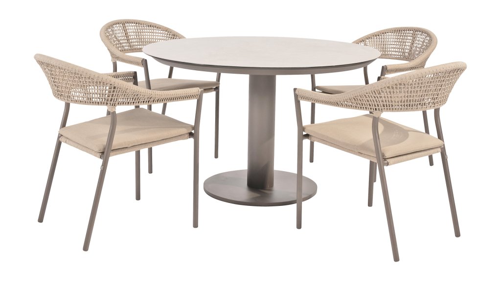 De Taste Sienna tuinset heeft zijn eigen unieke stijl die compleet word gemaakt met het moderne rope! De schoonheid zit hem in de details. De rug van de Sienna dining serie van Taste by 4Seasons is gevlochten uit rope en geeft een stevige maar comfortabele zit. Het frame vormt een speels en minimalistisch samenspel van vloeiende lijnen die een stevig geraamte vormen. Een lust voor het oog! De Sienna is verkrijgbaar in Latte, Terre & Antraciet.